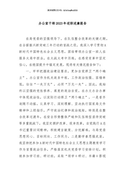 / 【七哥公文】2024年:办公室干部2023年述职述廉报告+更多免费公文+VX:QiGeGongWen2024