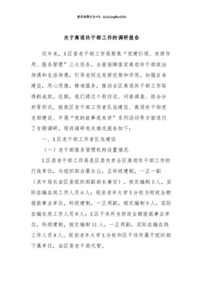 / 【七哥公文】2024年:关于离退休干部工作的调研报告+更多免费公文+VX:QiGeGongWen2024