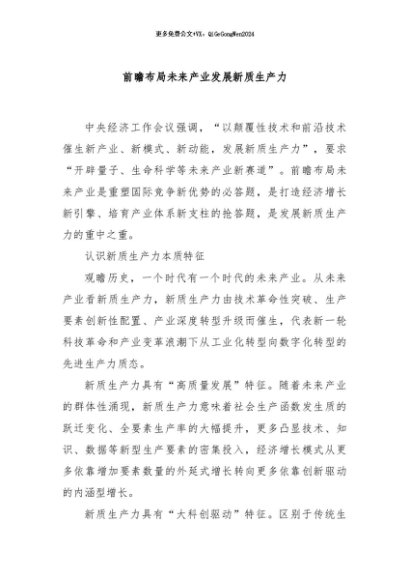 / 【七哥公文】2024年:前瞻布局未来产业发展新质生产力+更多免费公文+VX:QiGeGongWen2024