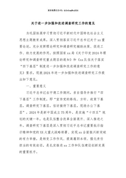 / 【七哥公文】2024年:关于进一步加强和改进调查研究工作的意见+更多免费公文+VX:QiGeGongWen2024