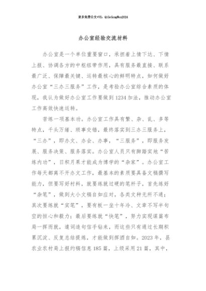 / 【七哥公文】2024年:办公室经验交流材料+更多免费公文+VX:QiGeGongWen2024