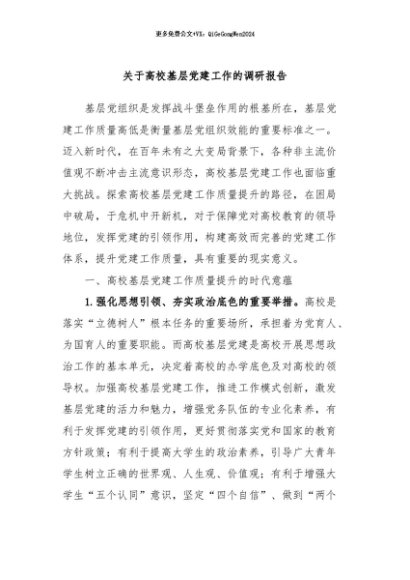 / 【七哥公文】2024年:关于高校基层党建工作的调研报告+更多免费公文+VX:QiGeGongWen2024