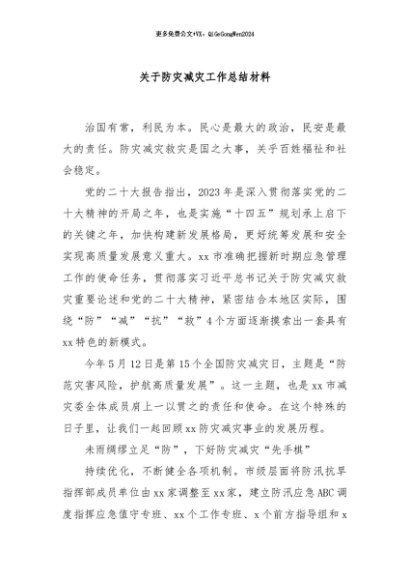 / 【七哥公文】2024年:关于防灾减灾工作总结材料+更多免费公文+VX:QiGeGongWen2024
