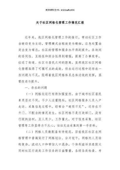 / 【七哥公文】2024年:关于社区网格化管理工作情况汇报+更多免费公文+VX:QiGeGongWen2024