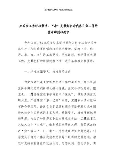 【七哥公文】2024年:办公室工作经验做法:“准”是做好新时代办公室工作的基本准则和要求+更多免费公文+VX:QiGeGongWen2024