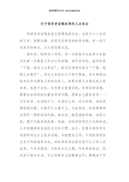 【七哥公文】2024年:关于领导讲话稿起草的几点体会+更多免费公文+VX:QiGeGongWen2024