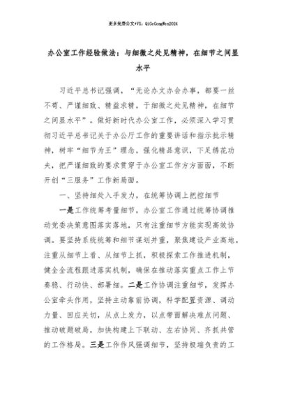 【七哥公文】2024年:办公室工作经验做法:与细微之处见精神,在细节之间显水平+更多免费公文+VX:QiGeGongWen2024