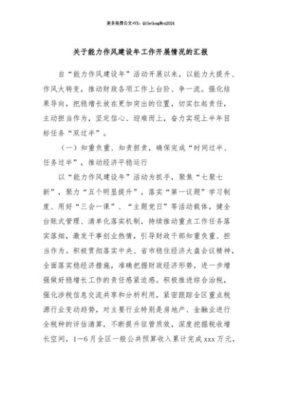 / 【七哥公文】2024年:关于能力作风建设年工作开展情况的汇报+更多免费公文+VX:QiGeGongWen2024