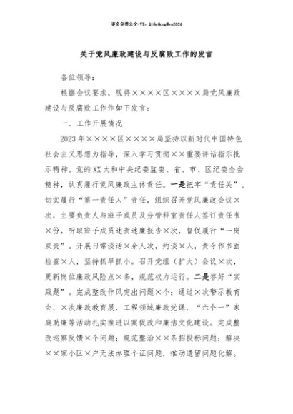 / 【七哥公文】2024年:关于党风廉政建设与反腐败工作的发言+更多免费公文+VX:QiGeGongWen2024
