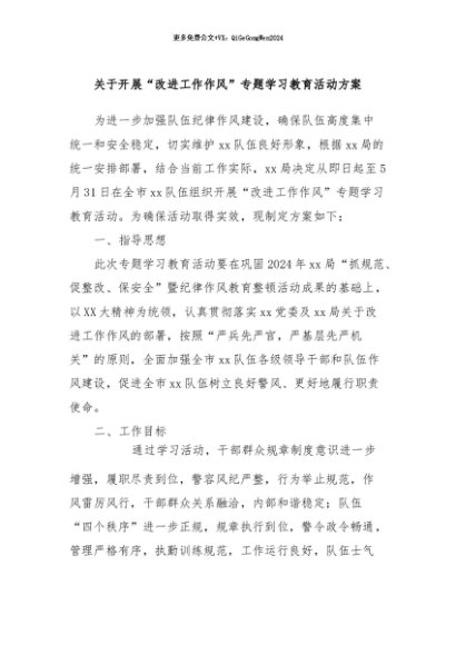 / 【七哥公文】2024年:关于开展“改进工作作风”专题学习教育活动方案+更多免费公文+VX:QiGeGongWen2024