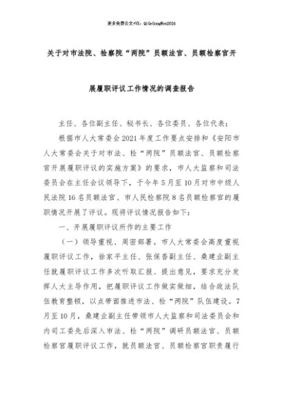 【七哥公文】2024年:关于对市法院、检察院“两院”员额法官、员额检察官开展履职评议工作情况的调查报告+更多免费公文+VX:QiGeGongWen2024