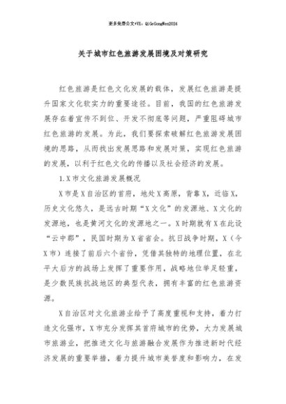 【七哥公文】2024年:关于城市红色旅游发展困境及对策研究+更多免费公文+VX:QiGeGongWen2024