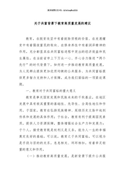 / 【七哥公文】2024年:关于共富背景下教育高质量发展的建议+更多免费公文+VX:QiGeGongWen2024