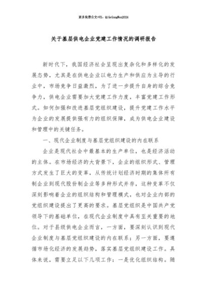 / 【七哥公文】2024年:关于基层供电企业党建工作情况的调研报告+更多免费公文+VX:QiGeGongWen2024