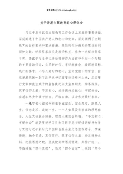 / 【七哥公文】2024年:关于开展主题教育的心得体会+更多免费公文+VX:QiGeGongWen2024