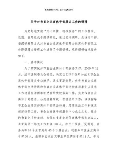 / 【七哥公文】2024年:关于对市直企业离休干部服务工作的调研+更多免费公文+VX:QiGeGongWen2024