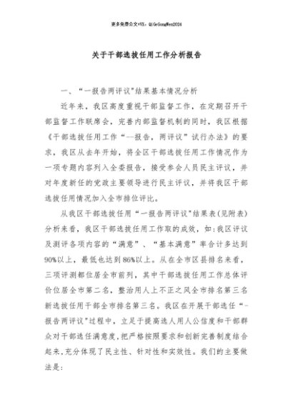 / 【七哥公文】2024年:关于干部选拔任用工作分析报告+更多免费公文+VX:QiGeGongWen2024