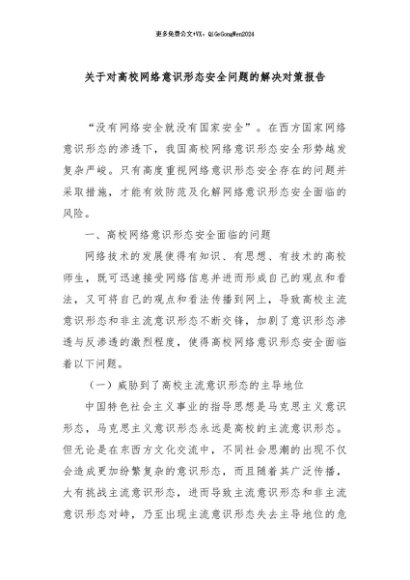 / 【七哥公文】2024年:关于对高校网络意识形态安全问题的解决对策报告+更多免费公文+VX:QiGeGongWen2024