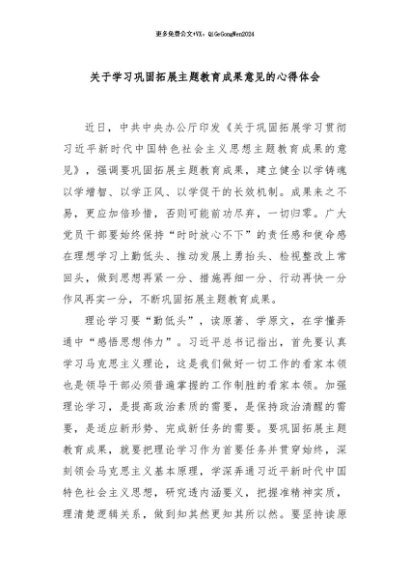 【七哥公文】2024年:关于学习巩固拓展主题教育成果意见的心得体会+更多免费公文+VX:QiGeGongWen2024