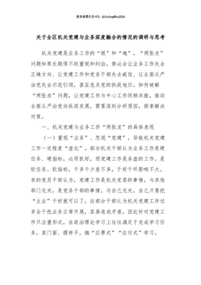 / 【七哥公文】2024年:关于全区机关党建与业务深度融合的情况的调研与思考+更多免费公文+VX:QiGeGongWen2024