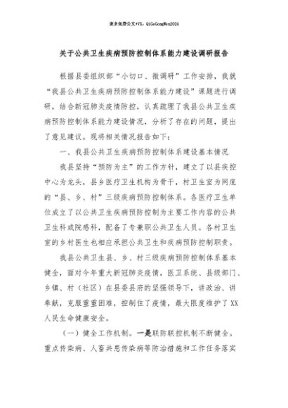 / 【七哥公文】2024年:关于公共卫生疾病预防控制体系能力建设调研报告+更多免费公文+VX:QiGeGongWen2024