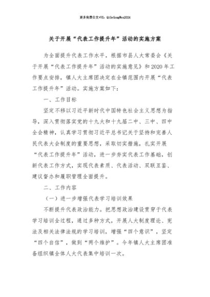 / 【七哥公文】2024年:关于开展“代表工作提升年”活动的实施方案+更多免费公文+VX:QiGeGongWen2024