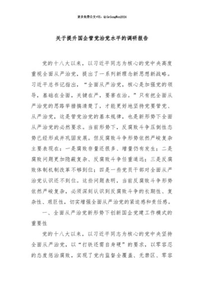 / 【七哥公文】2024年:关于提升国企管党治党水平的调研报告+更多免费公文+VX:QiGeGongWen2024