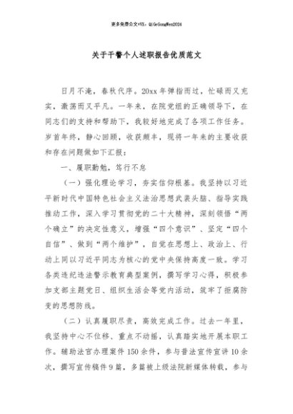 / 【七哥公文】2024年:关于干警个人述职报告优质范文+更多免费公文+VX:QiGeGongWen2024