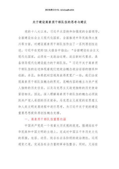 / 【七哥公文】2024年:关于建设高素质干部队伍的思考与建议+更多免费公文+VX:QiGeGongWen2024