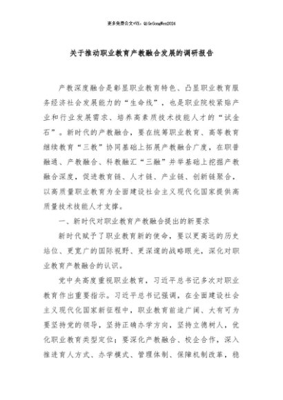 / 【七哥公文】2024年:关于推动职业教育产教融合发展的调研报告+更多免费公文+VX:QiGeGongWen2024