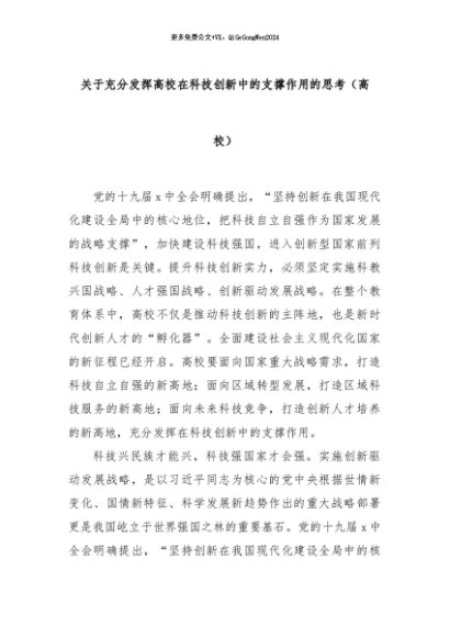 【七哥公文】2024年:关于充分发挥高校在科技创新中的支撑作用的思考(高校)+更多免费公文+VX:QiGeGongWen2024