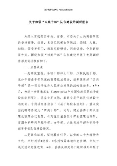 / 【七哥公文】2024年:关于加强“四类干部”队伍建设的调研报告+更多免费公文+VX:QiGeGongWen2024