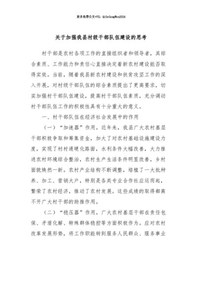 / 【七哥公文】2024年:关于加强我县村级干部队伍建设的思考+更多免费公文+VX:QiGeGongWen2024