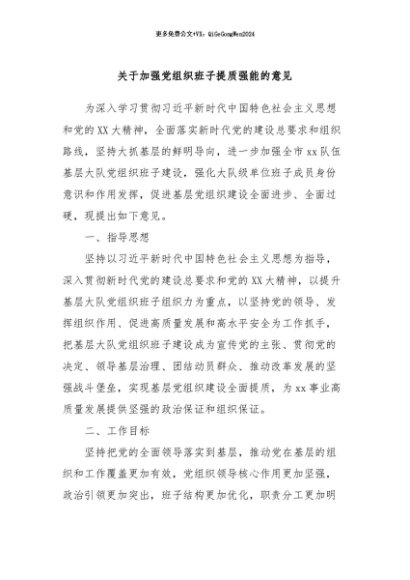/ 【七哥公文】2024年:关于加强党组织班子提质强能的意见+更多免费公文+VX:QiGeGongWen2024