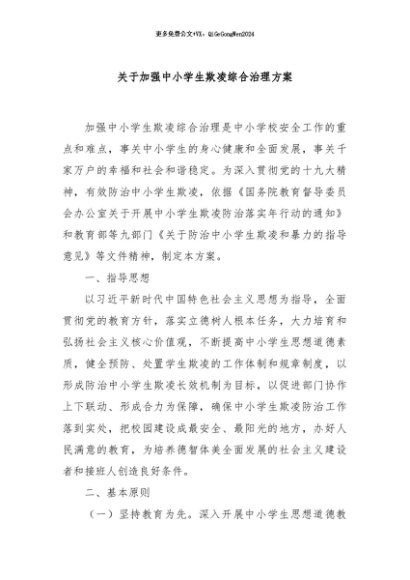 / 【七哥公文】2024年:关于加强中小学生欺凌综合治理方案+更多免费公文+VX:QiGeGongWen2024