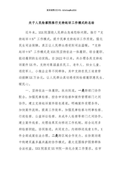 / 【七哥公文】2024年:关于人民检察院推行支持起诉工作模式的总结+更多免费公文+VX:QiGeGongWen2024