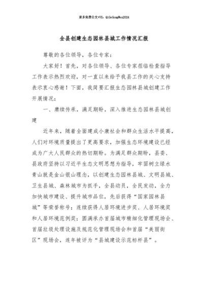 / 【七哥公文】2024年:全县创建生态园林县城工作情况汇报+更多免费公文+VX:QiGeGongWen2024