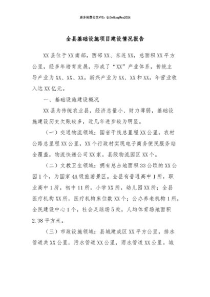 / 【七哥公文】2024年:全县基础设施项目建设情况报告+更多免费公文+VX:QiGeGongWen2024