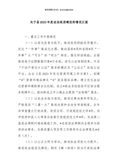 / 【七哥公文】2024年:关于县2023年度法治政府建设的情况汇报+更多免费公文+VX:QiGeGongWen2024