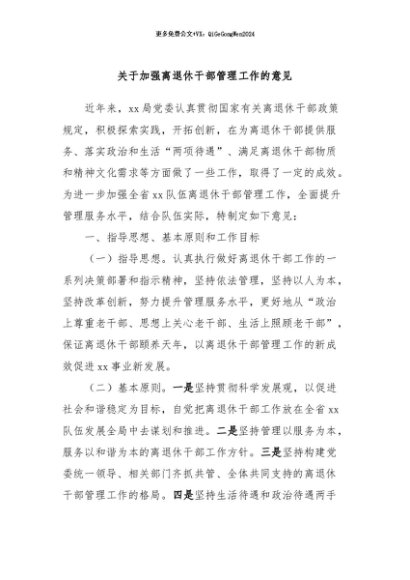 / 【七哥公文】2024年:关于加强离退休干部管理工作的意见+更多免费公文+VX:QiGeGongWen2024