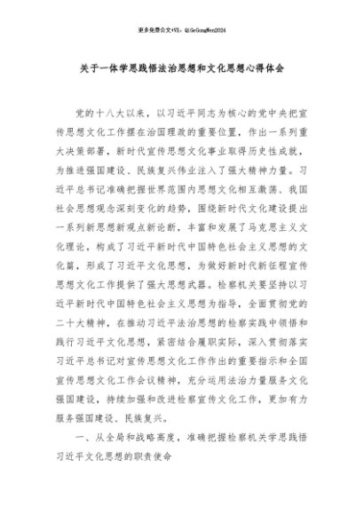 / 【七哥公文】2024年:关于一体学思践悟法治思想和文化思想心得体会+更多免费公文+VX:QiGeGongWen2024