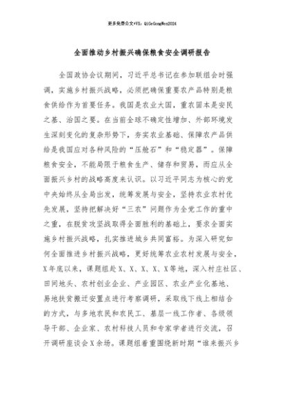/ 【七哥公文】2024年:全面推动乡村振兴确保粮食安全调研报告+更多免费公文+VX:QiGeGongWen2024