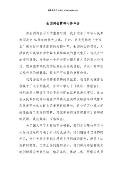 【七哥公文】2024年:全国两会精神心得体会+更多免费公文+VX:QiGeGongWen2024