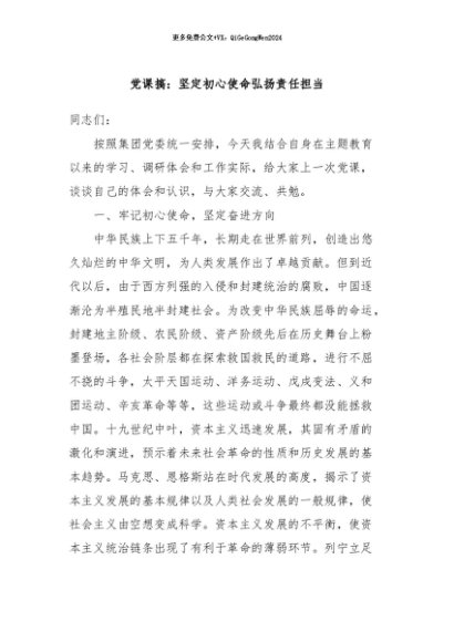 / 【七哥公文】2024年:党课:坚定初心使命弘扬责任担当+更多免费公文+VX:QiGeGongWen2024