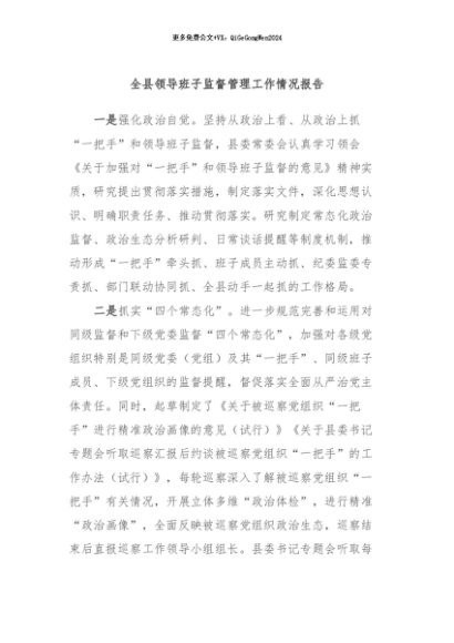 / 【七哥公文】2024年:全县领导班子监督管理工作情况报告+更多免费公文+VX:QiGeGongWen2024
