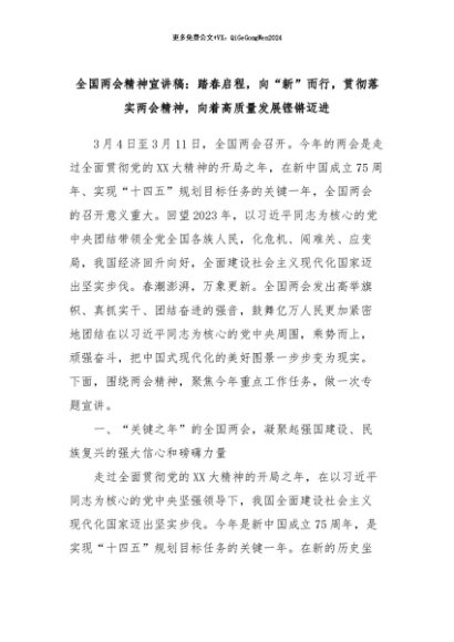 【七哥公文】2024年:全国两会精神宣讲稿:踏春启程,向“新”而行,贯彻落实两会精神,向着高质量发展铿锵迈进+更多免费公文+VX:QiGeGongWen2024