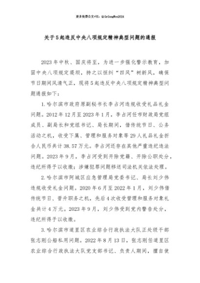 / 【七哥公文】2024年:关于5起违反中央八项规定精神典型问题的通报+更多免费公文+VX:QiGeGongWen2024