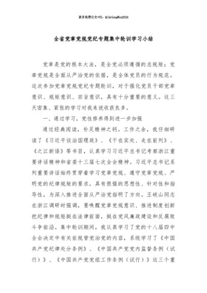 / 【七哥公文】2024年:全省党章党规党纪专题集中轮训学习小结+更多免费公文+VX:QiGeGongWen2024