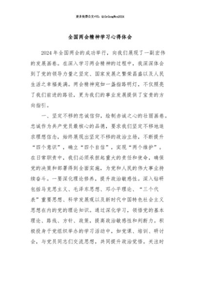 / 【七哥公文】2024年:全国两会精神学习心得体会+更多免费公文+VX:QiGeGongWen2024
