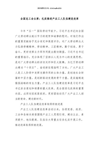 / 【七哥公文】2024年:全国总工会主席:扎实推进产业工人队伍建设改革+更多免费公文+VX:QiGeGongWen2024